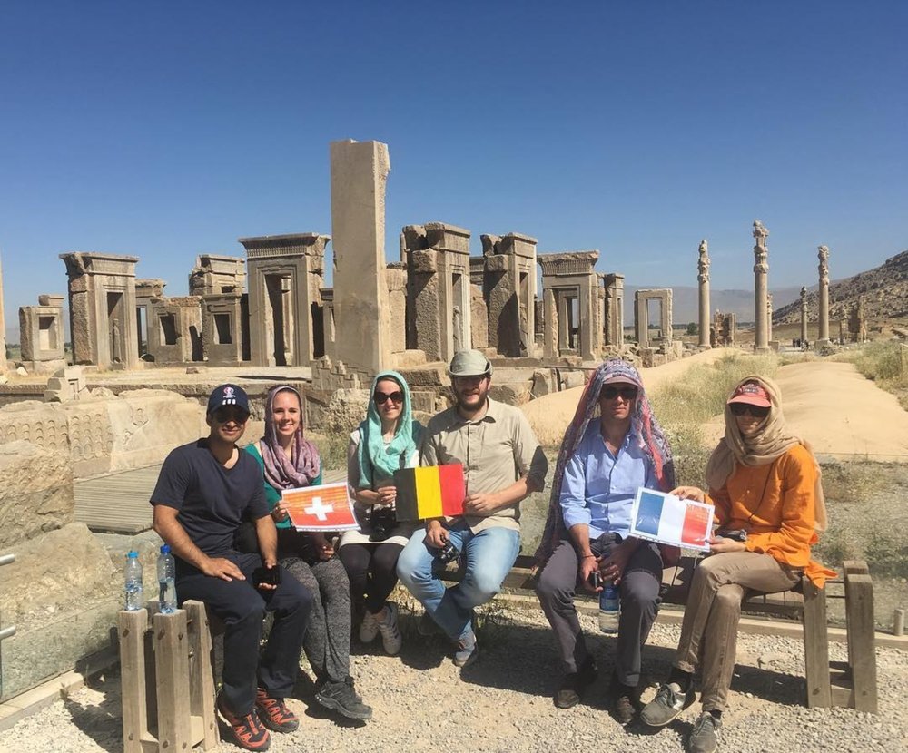 PHOTO: Foreign travelers pose for a photo during their visit to the UNESCO-registered Persepolis, in southern Iran.
