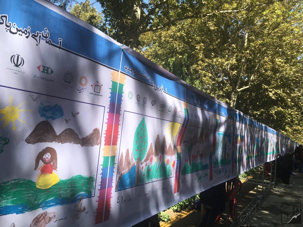 According to ISNA news agency, children, mostly aged 5 to 9 and accompanied by their families, came to the park from morning and took part in finishing the painting which is said to be the longest-ever in the country.
