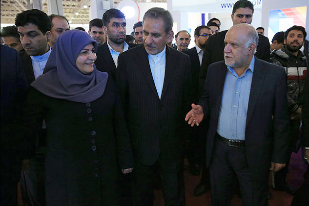 Iranian Vice President Es’haq Jahangiri, Oil Minister Bijan Namdar Zanganeh and National Petrochemical Company (NPC) Managing Director Marziyeh Shahdaie visited the exhibition after attending the opening ceremony.