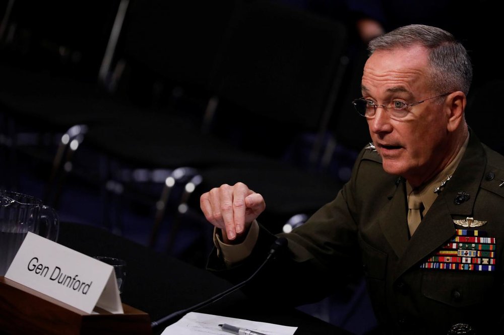 Marine Corps General Joseph Dunford, chairman of the Joint Chiefs of Staff, told the Senate Armed Services Committee that Iran was complying with its obligations under the nuclear deal.