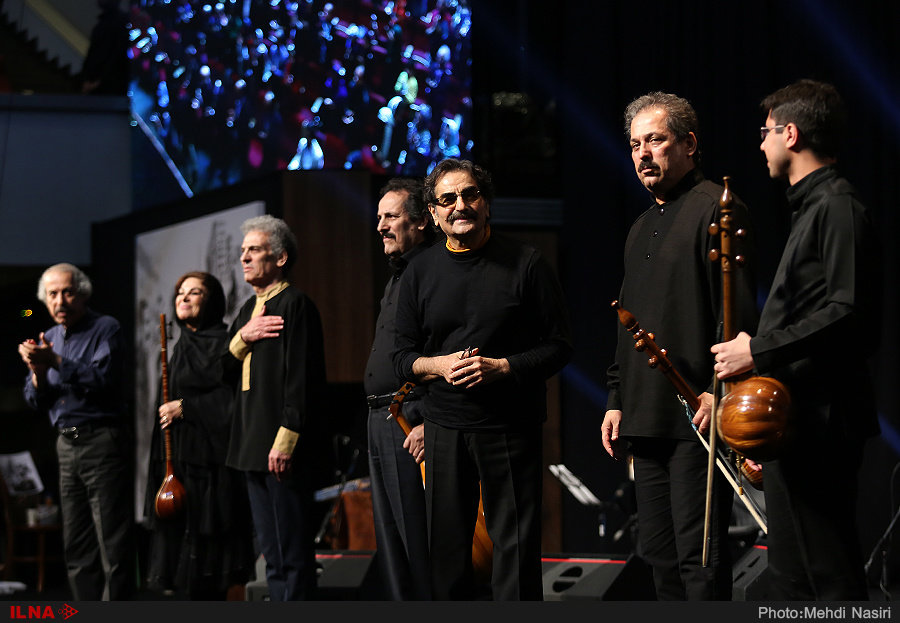 Photo: Shahram Nazeri (3rd R) and the Kamkars acknowledge the audience at a benefit concert at the Grand Hall of the Interior Ministry in Tehran on November 20, 2017. (ILNA/Mehdi Nasiri)