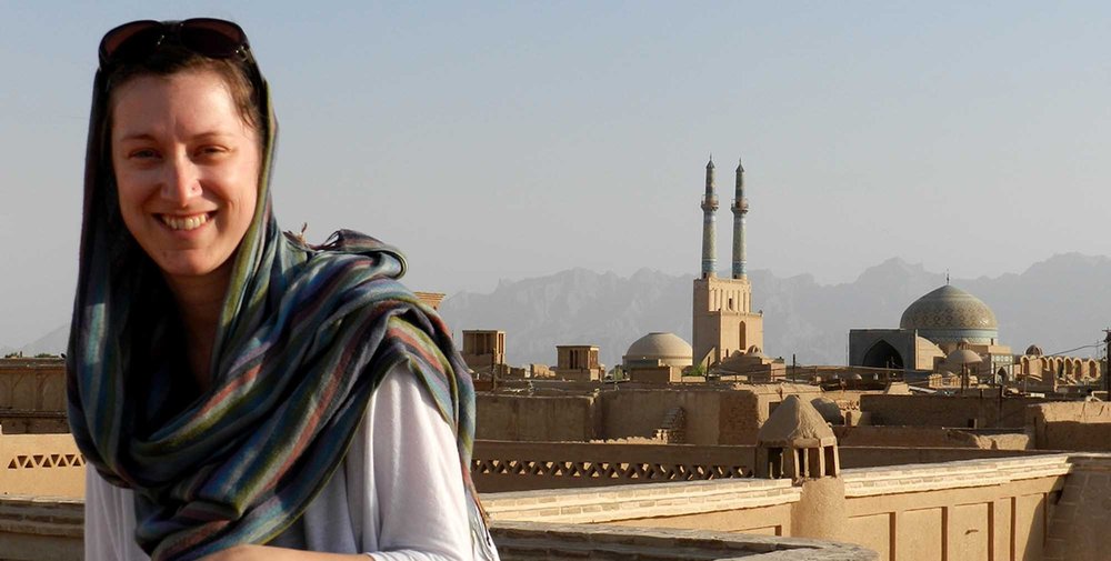 PHOTO: A Russian traveler poses for a photo during her trip to Yazd, central Iran.