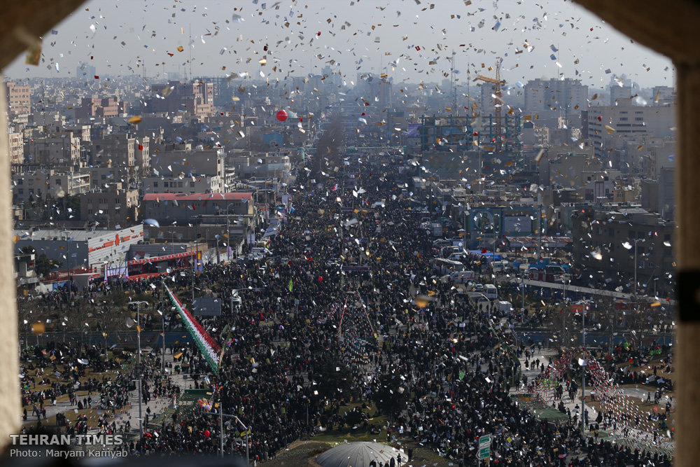 TEHARN – Iranians poured into the streets in large numbers on Sunday to mark the 39th anniversary of the victory of the Islamic Revolution and express their loyalty to the Islamic republic system.