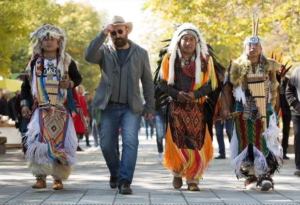Photo: Director/actor Mehran Ahmadi acts with a number of actors in a scene from his directorial debut “Confiscation”.
