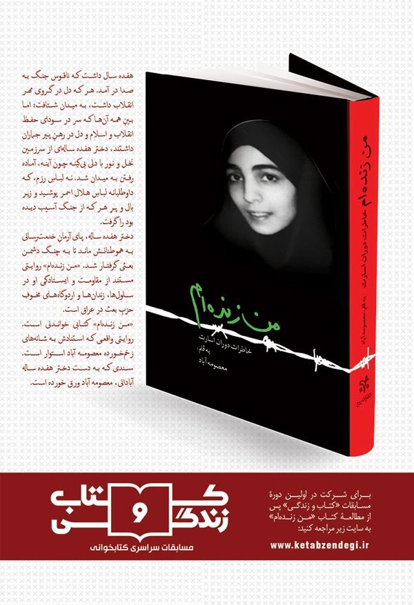 “I’m Alive” was originally published in 2013 by Boruj Publications, and Leader of the Islamic Revolution Ayatollah Seyyed Ali Khamenei wrote a commendation for the book.