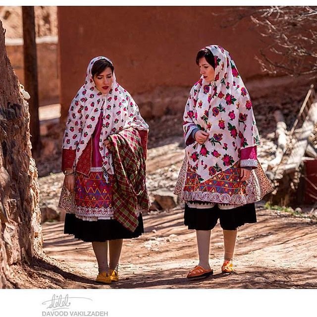 In the village of Abyaneh, Isfahan Province, the aging population has maintained their traditional clothes. Women continue to don airy, below-the-knee skirts and their signature long, white floral scarves that cover the shoulders.