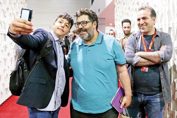 Iranian actor Farhad Aslani (C) poses with fans for a selfie during the 36th Fajr International Festival at Tehran Charsu Cineplex on April 21, 2018. The festival will come to end by honoring winners on April 26. (Tehran Times/Asghar Khamseh)