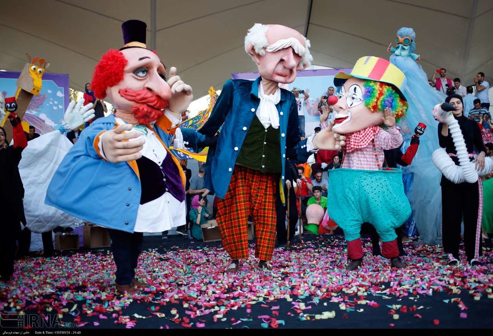 Photo: Popular puppet characters perform during the opening ceremony of the 17th Mobarak International Puppet Theater Festival in Ab-o-Atash Park in Tehran on August 22, 2018. (IRNA/Mahtab Karambeigi)