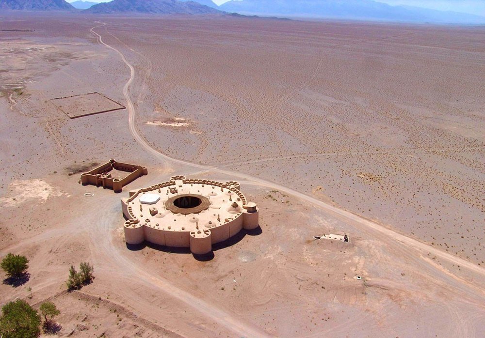Like its other Iranian counterparts, the caravanserai has a massive portal with elevated surrounding walls.