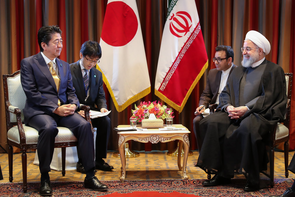 Japanese Prime Minister Shinzo Abe and President Rouhani sat for talks on the sidelines of the UN General Assembly in New York on September 26, 2018.
