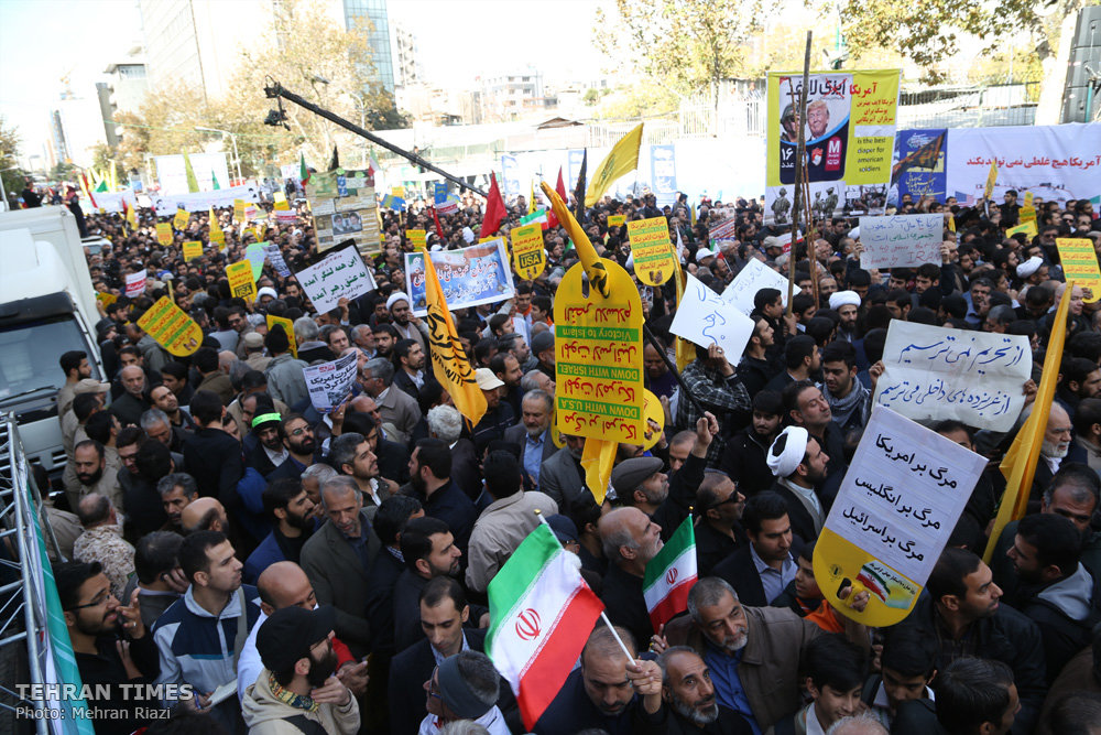 TEHRAN – Iranians on Sunday held a large gathering outside the former U.S. embassy in Tehran to cherish the memory of the capture of the “den of spies” in 1979, as the late Imam Khomeini called it back then.
