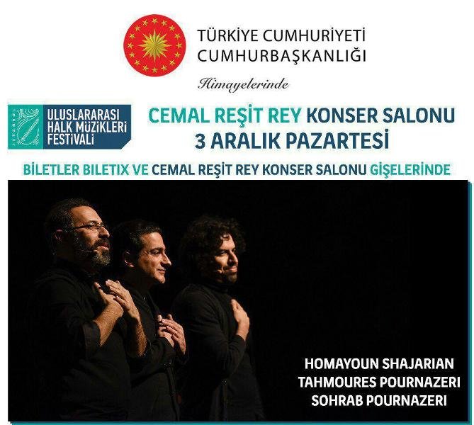 TEHRAN – The celebrated Iranian vocalist Homayun Shajarian will give a concert during the 1st International Folk Music Festival on December 3 at Cemal Resit Rey Music Hall in Istanbul, Turkey, the organizers announced on Wednesday.