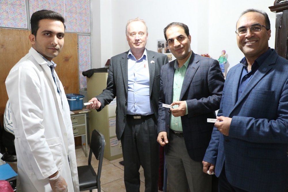Dr. Christoph Hamelmann, the WHO Representative in the Islamic Republic of Iran, during a surprise visit to a Drop-in Center in Kerman on November 28 took a HIV test to highlight this year's theme of World AIDS Day 2018 as "Know Your Status".