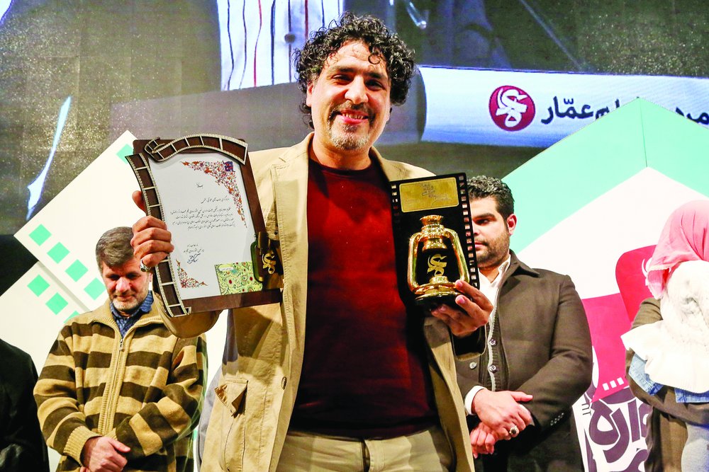 Photo: Director Mohammad-Taqi Rahmati holds the Golden Lantern for Best Documentary on Economic War for his “In the Name of Father” during the 9th Ammar Popular Film Festival at Tehran’s Felestin Cinema on January 10, 2019. (Mehr/Hamid Vakili).