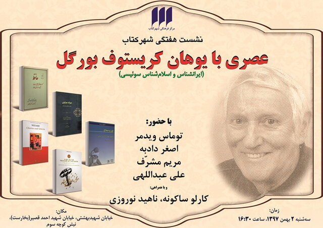 “A Session with Johann Christoph Burgel” will be attended by Thomas Widmer, the second secretary of the Embassy of Switzerland in Iran, and several Iranian scholars, including Asghar Daadbeh and Ali Abdollahi.