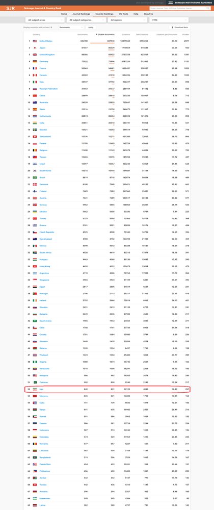 Based on their country rankings, in 1996, Iran ranked 52 among the 240 countries that were studied for their production of scientific documents.