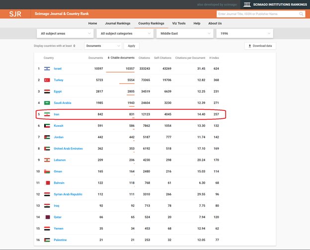But in 2017, with a noticeable jump and important difference compared to other countries, Iran ranked first in producing and publishing citable documents in the region. Moreover, Iran has published 13,000 more scientific documents than the second country in the ranking.