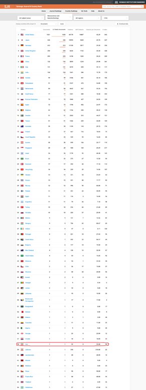 In its statistical exploration of the scientific situation of countries, Scimago Journal has offered interesting results: