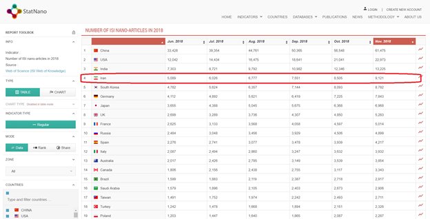 In addition, as for the number of ISI articles published on Nano, Iran stands as the fourth nation, following countries like China and the U.S.; and countries like Germany, the U.K., and Japan come after Iran.