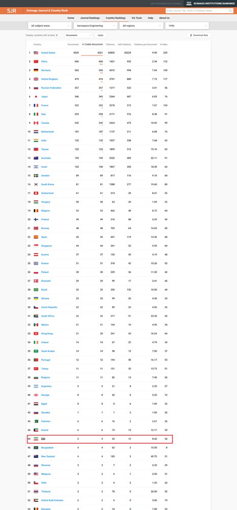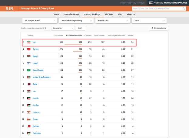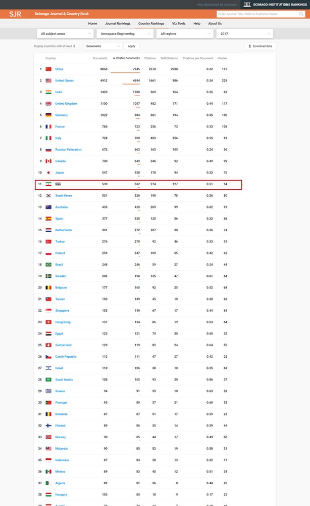 However, taking a fast-forward leap, in 2017 Iran ranked the 11th in the world in scientific production on Aerospace.