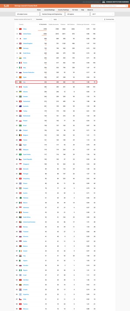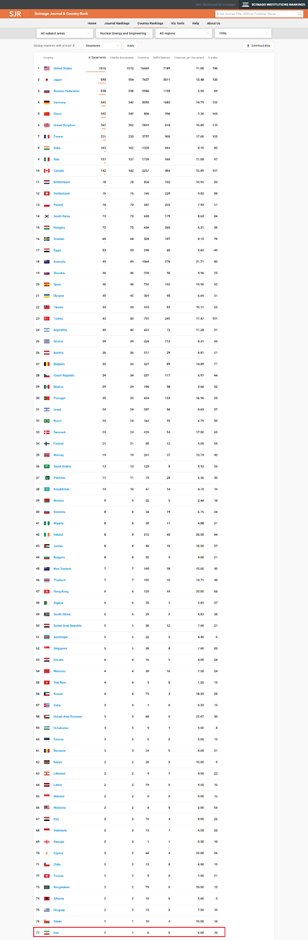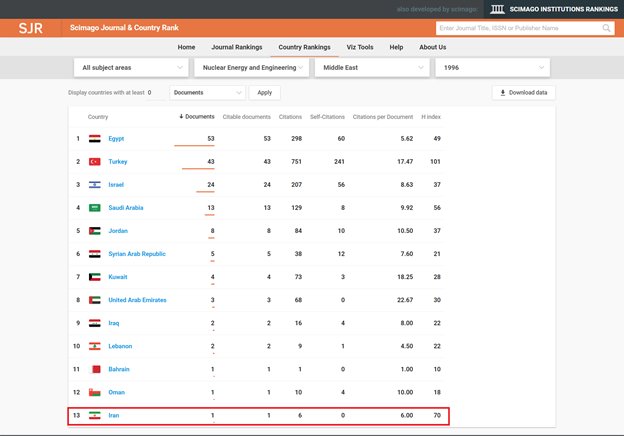 One of the scientific disciplines in which Iran made remarkable achievements in the years following the Islamic Revolution is nuclear engineering and science. According to the information provided by Scimago Journal, in 1996, Iran ranked 70 in the world in terms of scientific output and papers.