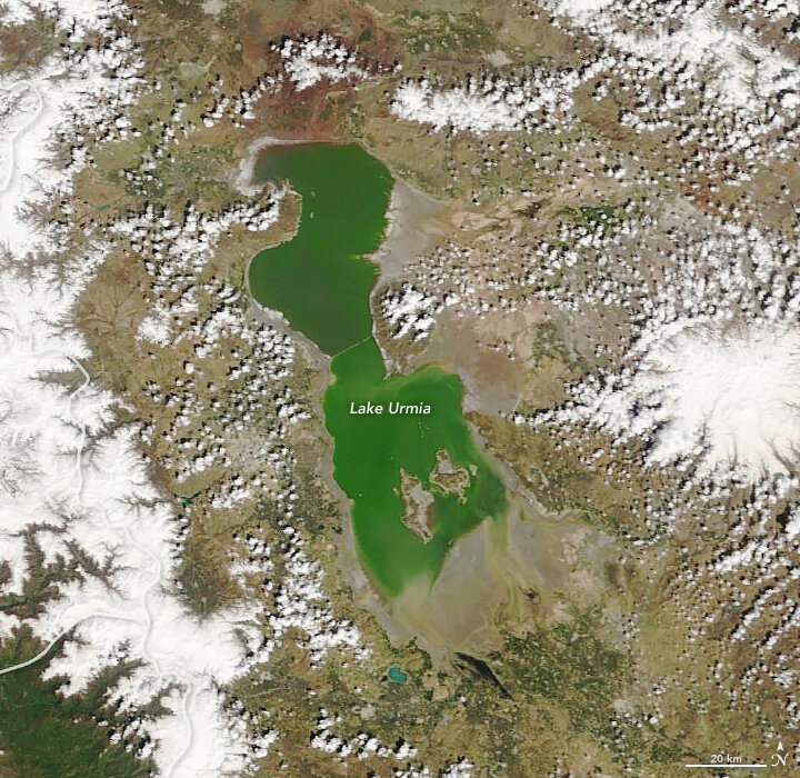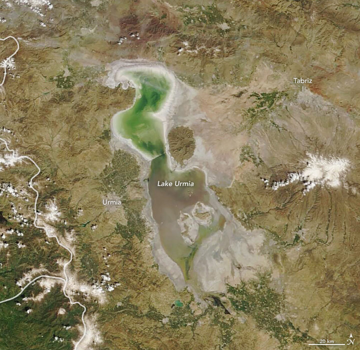 Images published on NASA Earth Observatory website, acquired by the Moderate Resolution Imaging Spectroradiometer (MODIS) on NASA’s Terra satellite, compare Lake Urmia on April 9, 2018, and April 12, 2019 showing the improvement the lake’s has made within a year.