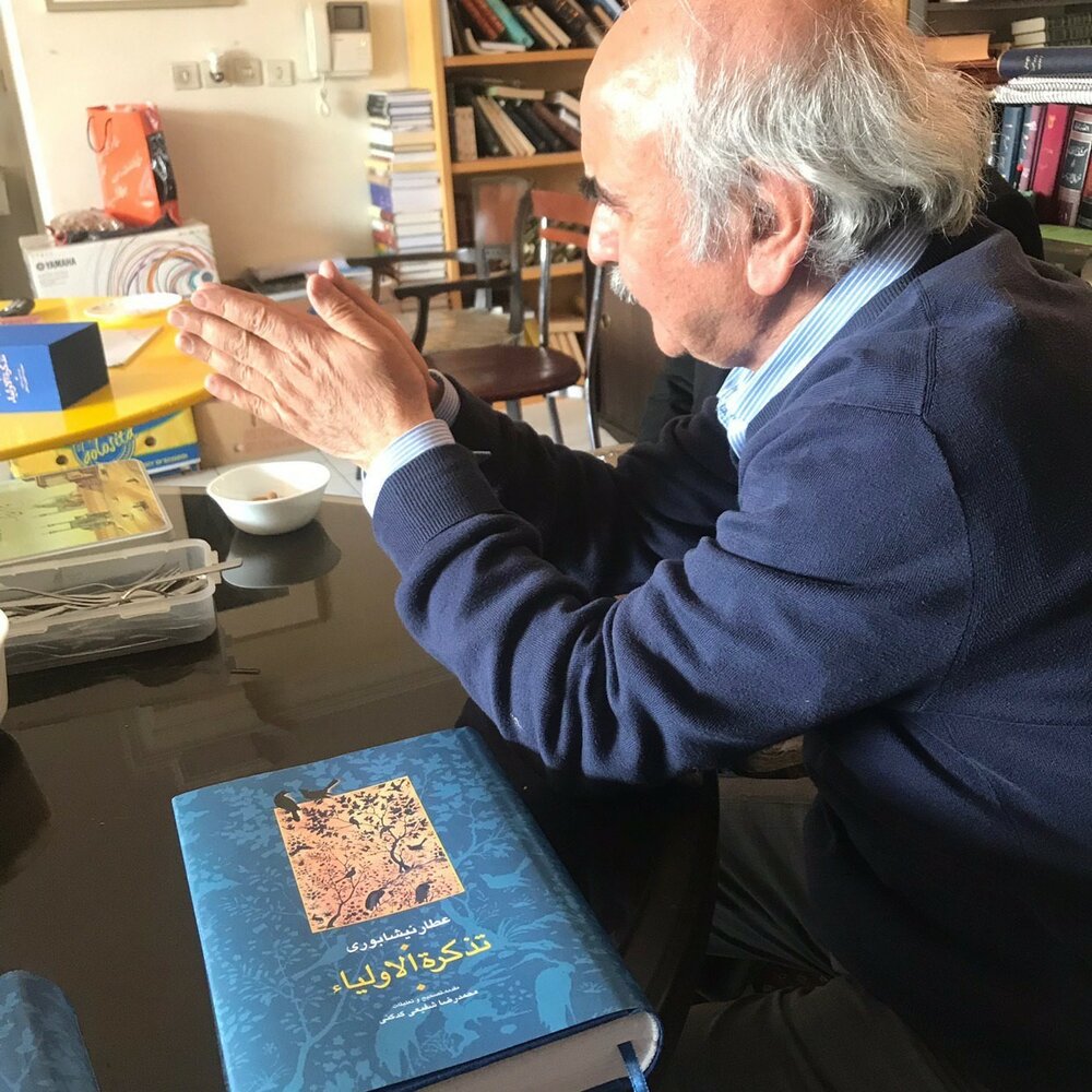 Photo: Persian literature scholar Mohammadreza Shafiei Kadkani is seen with a copy of Persian poet and mystic Farid ad-Din Attar’s Tadkerat al-Awlia.
