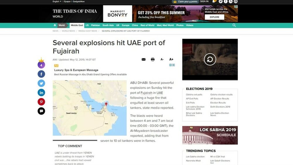 The behavior of the Western corporate media regarding the Fujairah incident was similar to their treatment of reports on Saudi port of Yanbu published earlier this month.