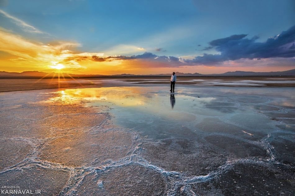 TEHRAN – Salt lakes sometimes appear like giant expanses of mirror, making it hard to differentiate between the sky and the ground. Hoz-e Sultan, a lonely salt lake in the heart of Iran, is one of those.