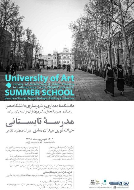 “New Life of Mashq Square, Heritage of Military Architecture” is the main topic of the summer course. Mashq Square in downtown Tehran was the place where armed forces used to do exercises.