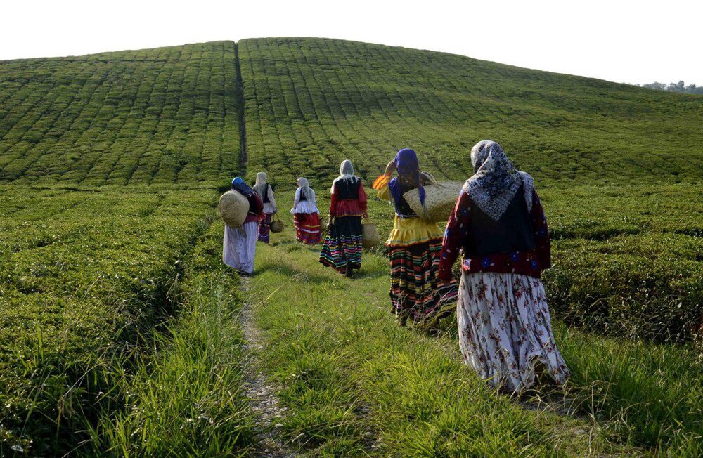 Farmers, clad in colorful traditional outfits, are seen during a tea harvest festival in Darbaq village, northern Iran, July 14, 2019.