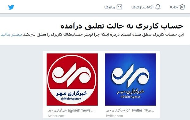 TEHRAN – The twitter accounts of the Persian services of Mehr News Agency, Islamic Republic of Iran News Agency (IRNA) and Young Journalists Club (YJC) were suspended, Mehr reported on Saturday.