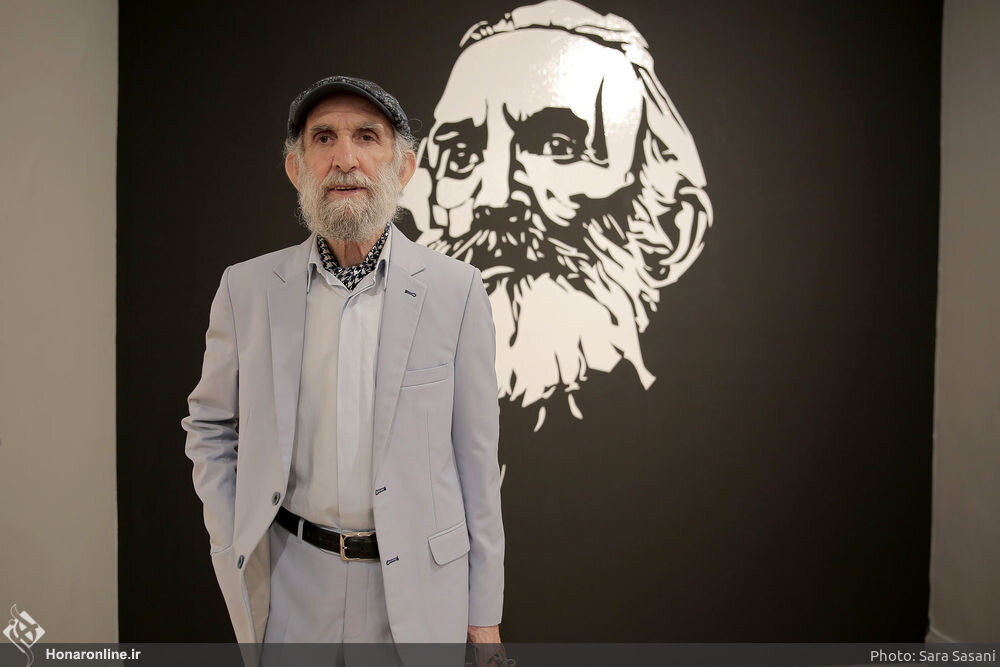 Photo: Actor and artist Esmaeil Khalaj attends the opening ceremony of his exhibit “Shadow” at the Iranian Artists Forum in Tehran on August 9, 2019. (Honaronline/Sara Sasani)