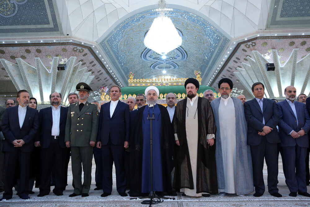 TEHRAN – Iranian President Hassan Rouhani and his cabinet team on Saturday visited the shrine of Imam Khomeini in south of Tehran to renew their faithfulness to the founder of the Islamic Republic.