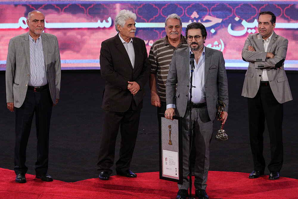 Producer Majid Motallebi received his award from Cinema Organization of Iran director Hossein Entezami and producer Manuchehr Shahsavari.