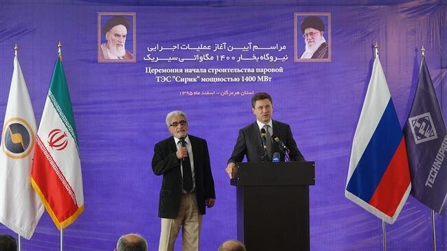Photo: The photo taken in February 2017 shows Russian Energy Minister Alexander Novak (R) speaking at a gathering to mark the start of cooperation between Iran and Russia for building a major power plant in Sirik, in southern Iranian province of Hormozgan.