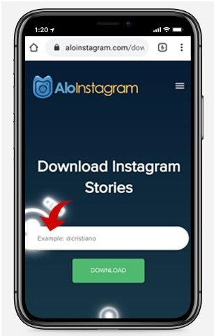 Go To https://aloinstagram.com/download-instagram-Stories/ And Paste Username, in the above text box or on the main page.