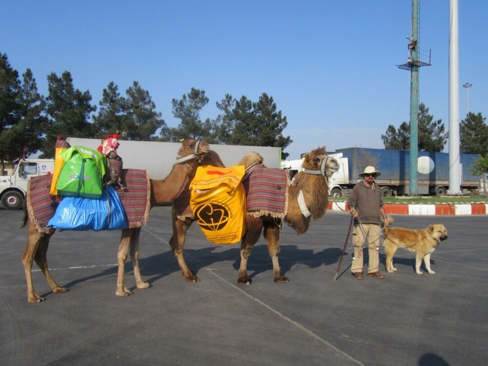 Iranian man on camelback journey carrying message of conservation