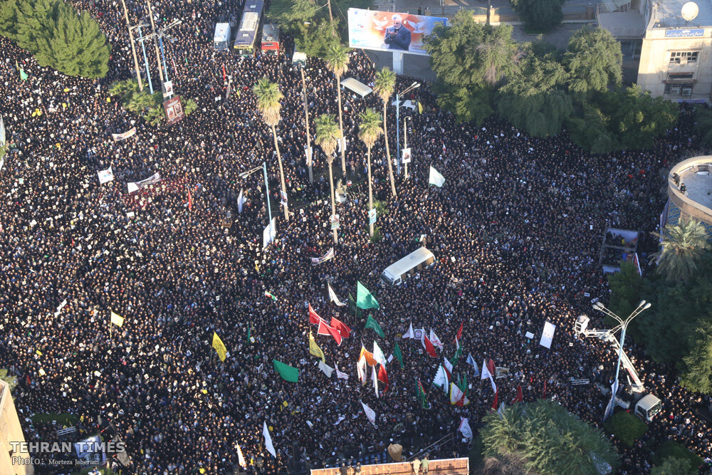 Thousands of mourners from all walks of life have participated in the funeral ceremony in Ahvaz on Sunday for Lieutenant General Qassem Soleimani who was assassinated in the U.S. air raid in Baghdad on Friday.
