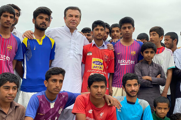 The ex-player of the Iranian national football team, clad in the traditional dress of Sistan and Balouchestan, played football with young people of Owraki Village for a few minutes and tried to encourage aspiring children to follow their dreams during difficult times.