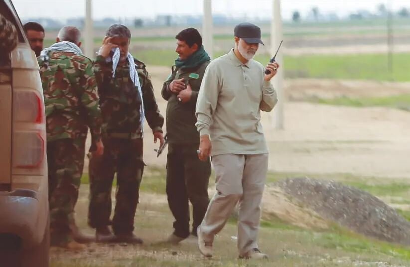 Photo: Quds Force chief Qassem Soleimani uses a walkie-talkie at the frontlines during offensive operations against the ISIS terrorists in Salahuddin province, Iraq, in 2015.