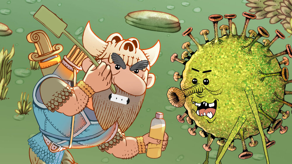 Photo: A scene from “Rustam and Zakariya against Coronavirus”, the first episode of Iranian animator Jamal Rahmati’s series “The Seven Adventures of Coronavirus”.