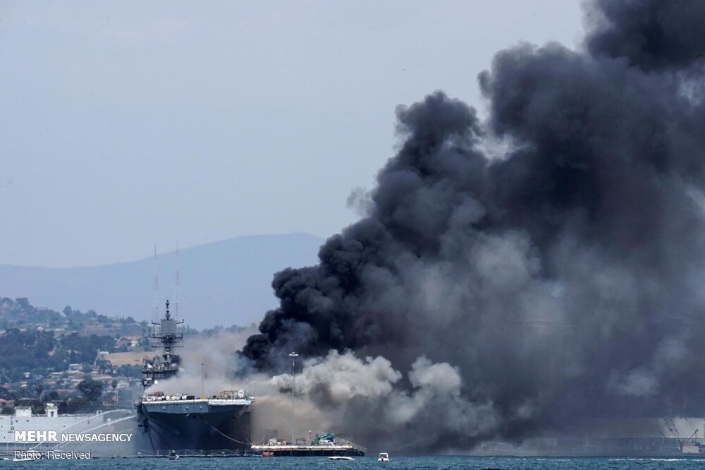 TEHRAN – A ship at the U.S. Naval base in San Diego has caught fire which according to reports, has injured at least 21 people on board.