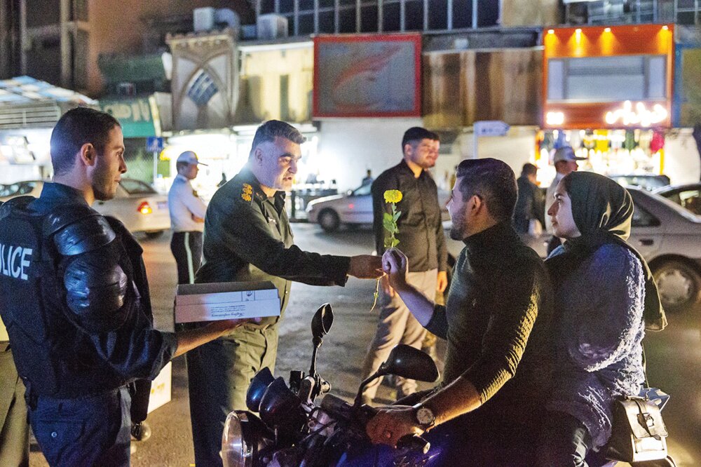 Police forces offered flower and sweet to passersby at Vali Asr Square in central Tehran. It was done on Thursday night to celebrate the birth anniversary of the Prophet Mohammad (pbuh). The move shows police’s respect and devotion to people amid recent protests.