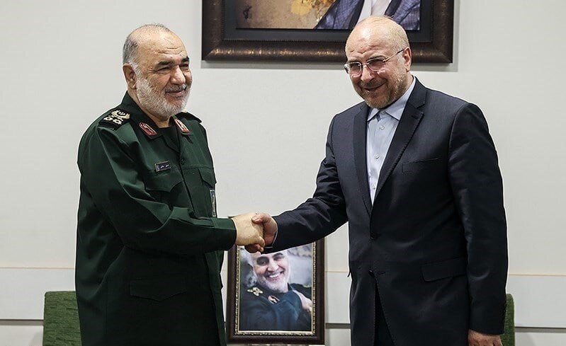 TEHRAN – Iranian Parliament Speaker Mohammad Bagher Qalibaf paid a visit to the chief headquarters of the Islamic Revolution Guards Corps in the early hours of Saturday morning and met with IRGC chief commander General Hossein Salami.
