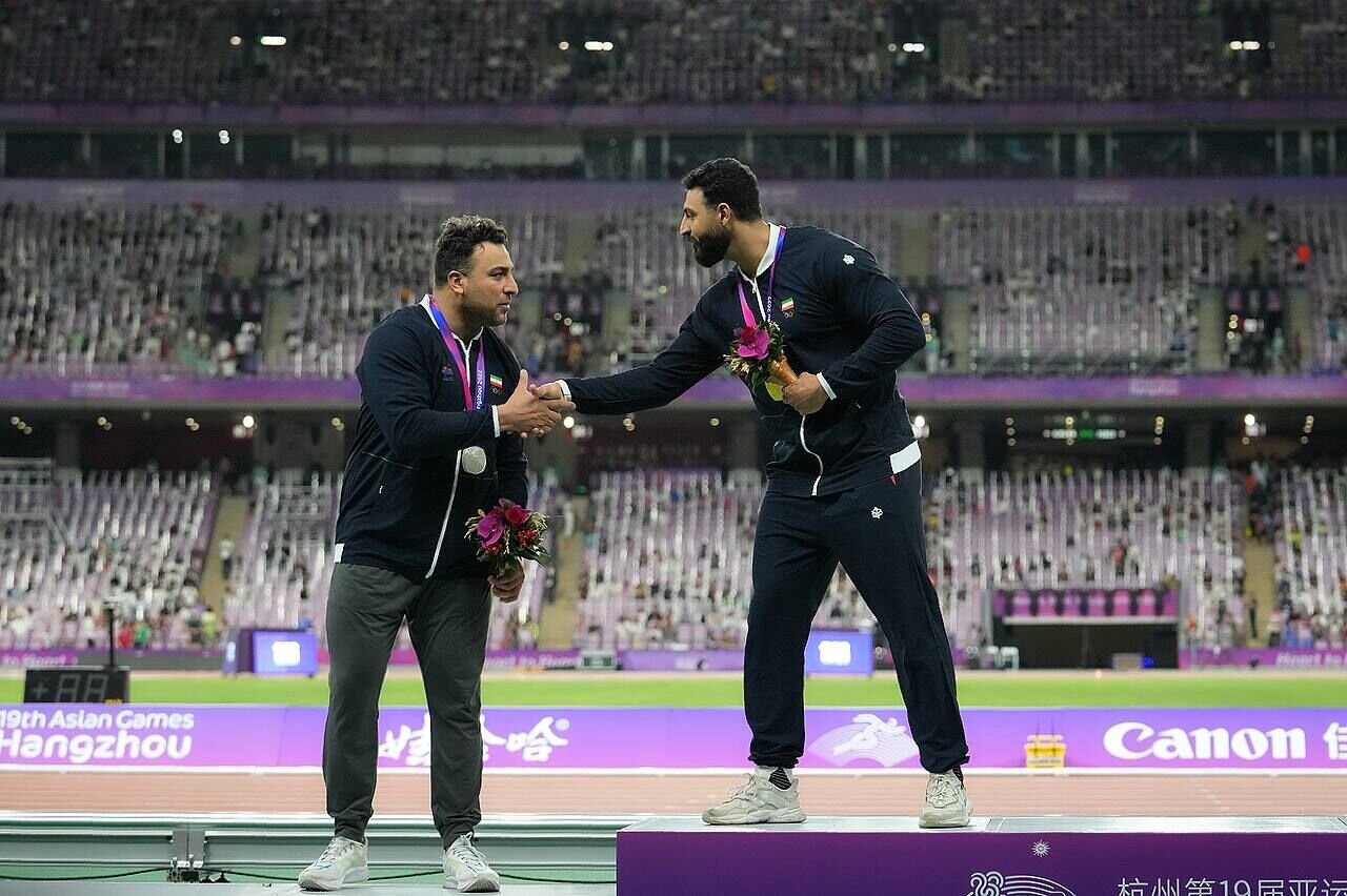 TEHRAN – Iranian discus throwers Hossein Rasouli and Ehsan Hadadi claimed a gold and silver medal, respectively in the 2022 Asian Games on Monday.