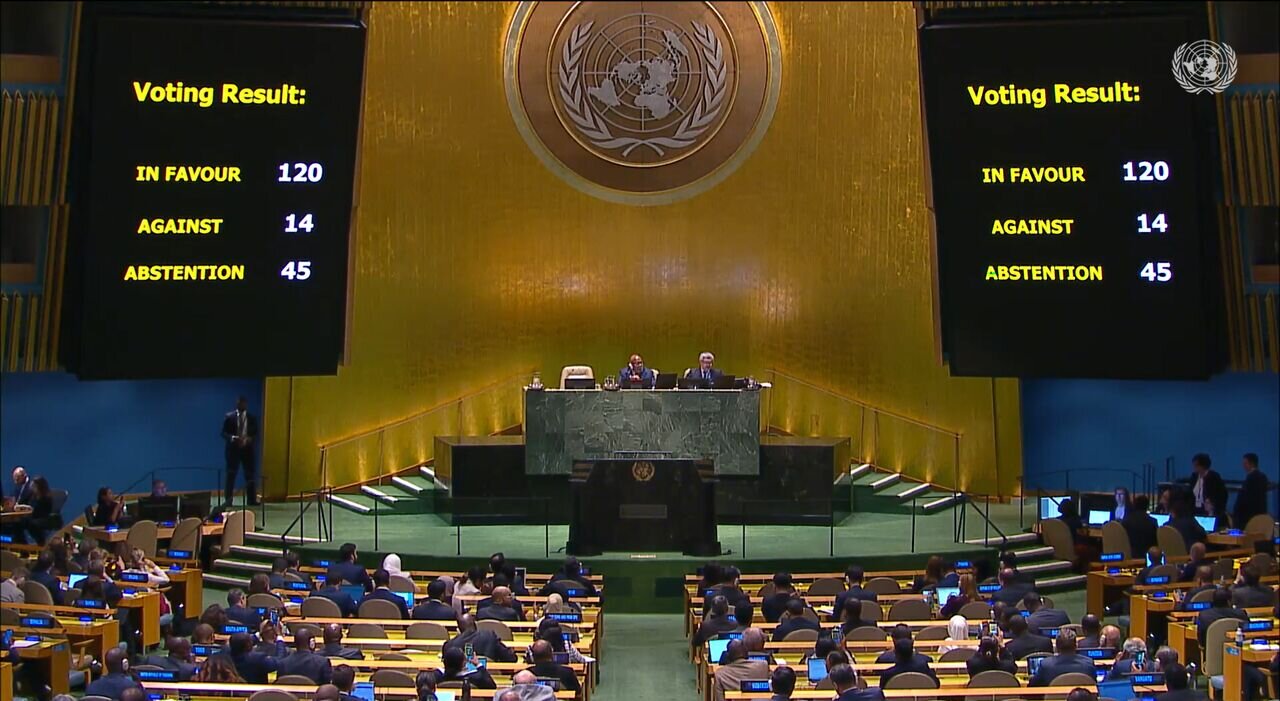 The resolution in question was passed overwhelmingly at the UN General Assembly on Friday, with 120 countries voting in favor, 14 voting against, and 45 abstaining.