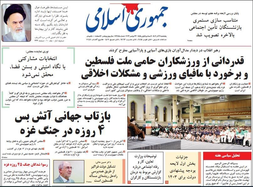The Jomhouri Eslami newspaper delved into the issue of Palestine and discussed the available options in the aftermath of war.