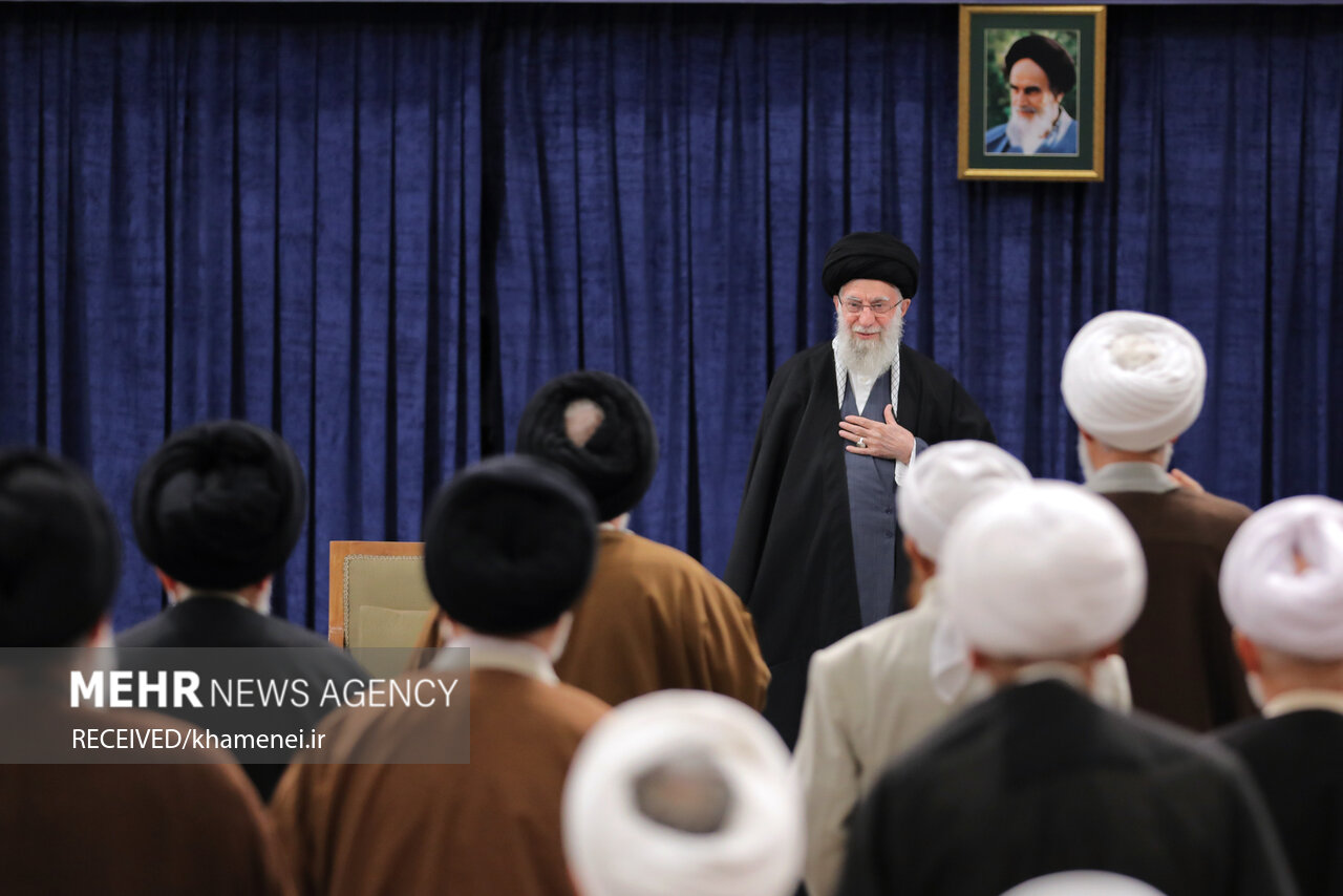 During the meeting, which was held in the Imam Khomeini (ra) Hussainiyah on Thursday, the Leader said, “Prior to the establishment of the Islamic Republic, the only existing global front was the front of democracies that were dependent on Western liberal democracy. However, with the victory of the Islamic Revolution, a new front was formed based on Islamic democracy, which has naturally stood in opposition to the Western front of democracy.”