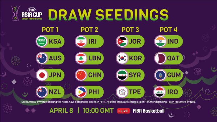 The FIBA Asia Cup 2025 will be played at Jeddah from Aug. 5-17, marking the first time the Persian Gulf state is hosting FIBA’s flagship event in Asia after 1997.